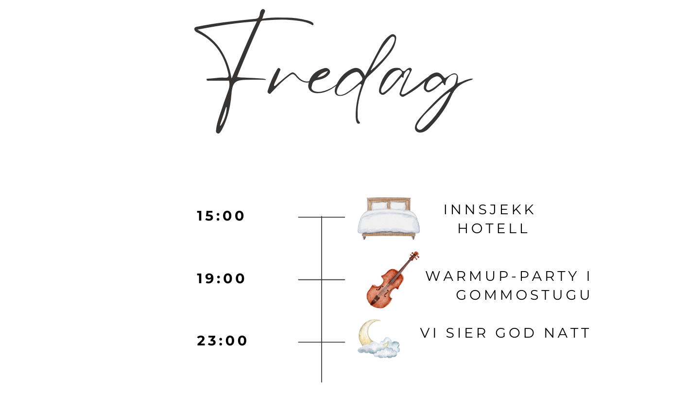 Dere vil finne info om blant annet overnatting, transport, program for bryllupet og mye mer!