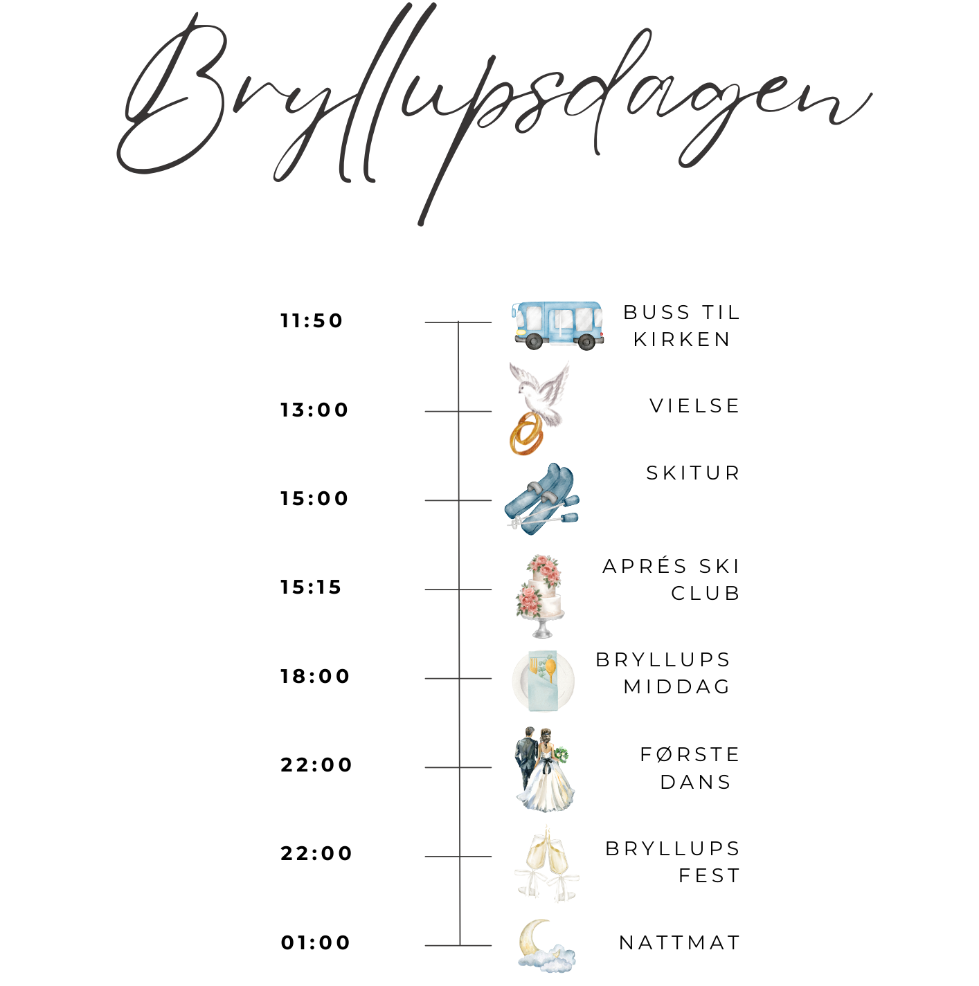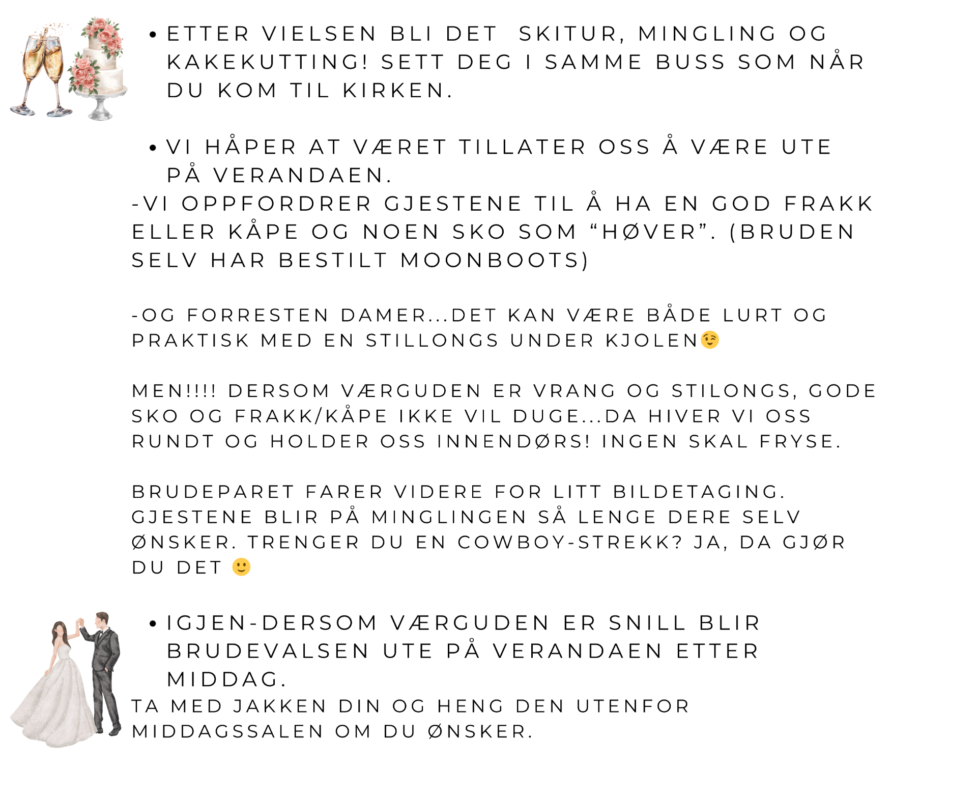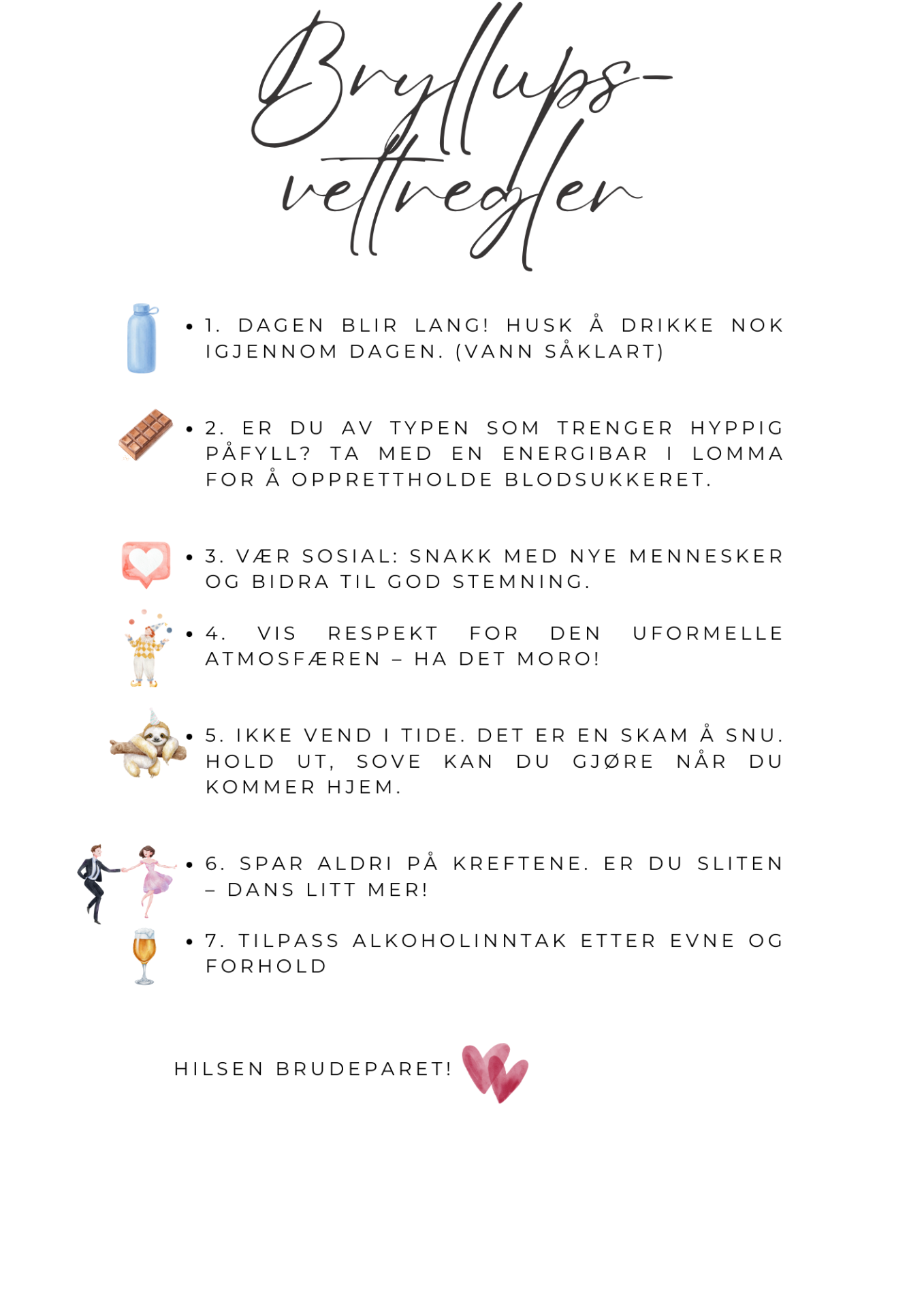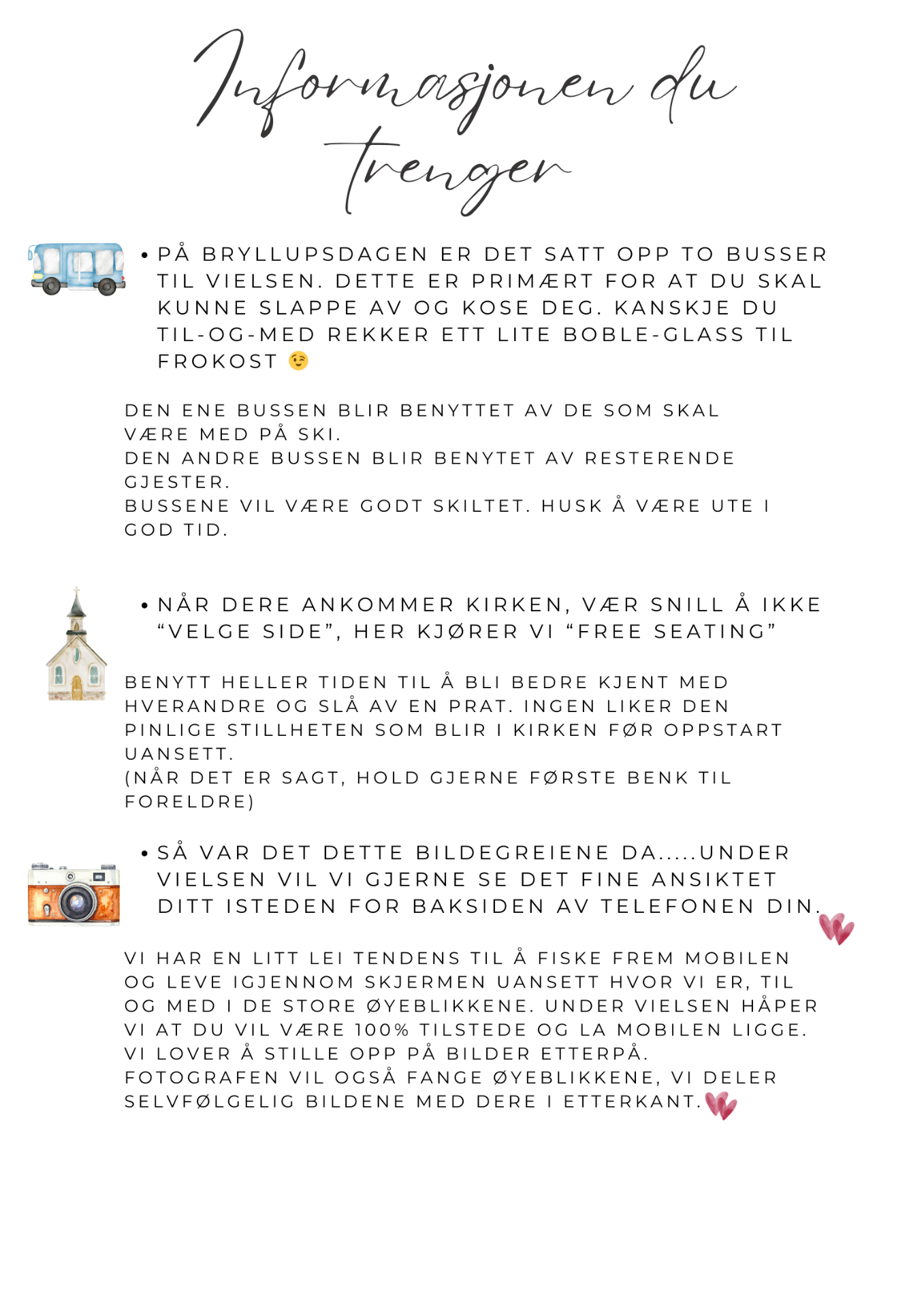 Nedtellingen er i gang! Bryllupet nærmer seg med stormskritt, og her kommer all informasjonen du trenger!